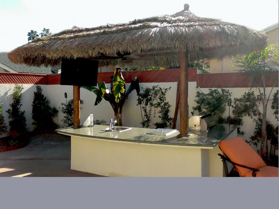Two Pole Tahitian Palapas are wonderful over spas, BBQ islands, pools, or just for shade. The most popular application for this type of palapa is placing it over a BBQ island since the shape of the palapa can cover the BBQ Island and your guests! If you want to truly vacation at home, purchase a two pole Tahitian palapa!